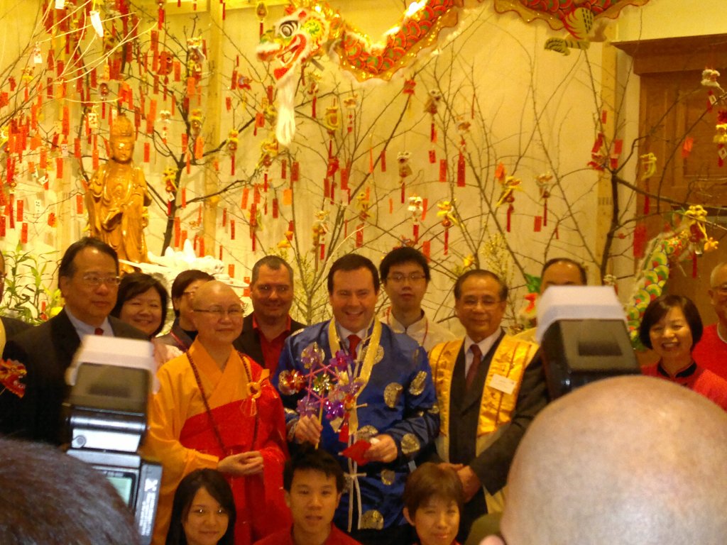 The Honorable Jason Kenney, Conservative MP Brad Butt in the back and the Abbess Ven. Jue Chu