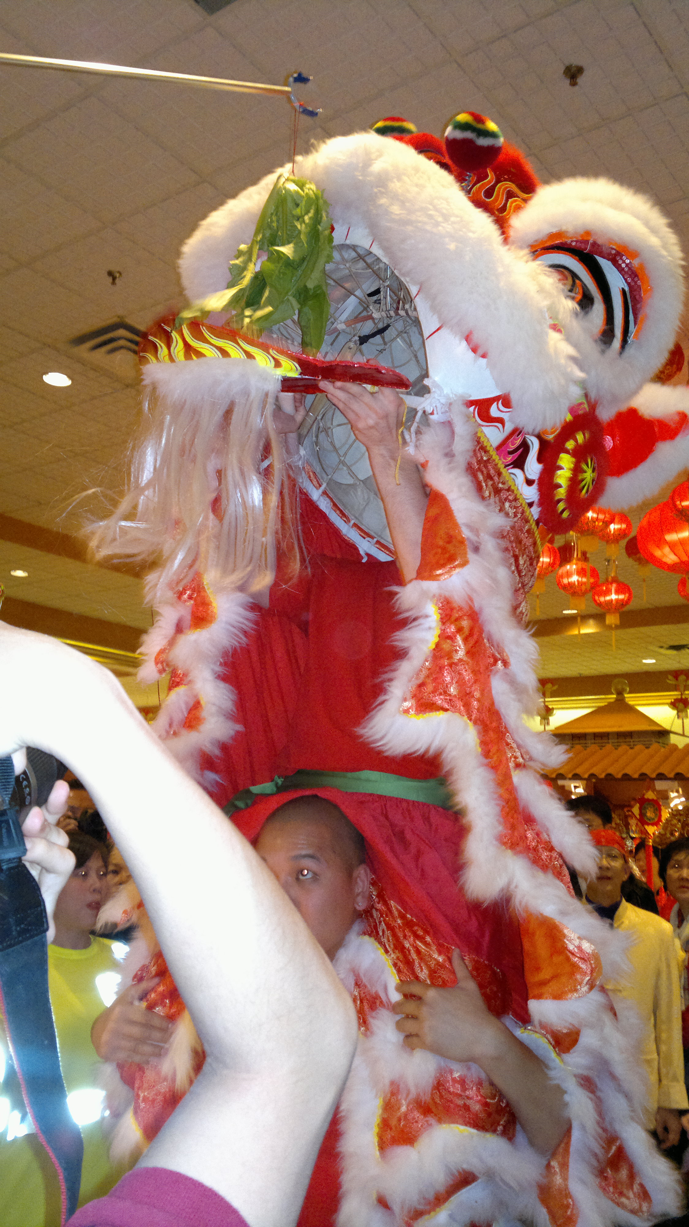 The lion preparing to eat the lettuce – a symbol of luck and prosperity.